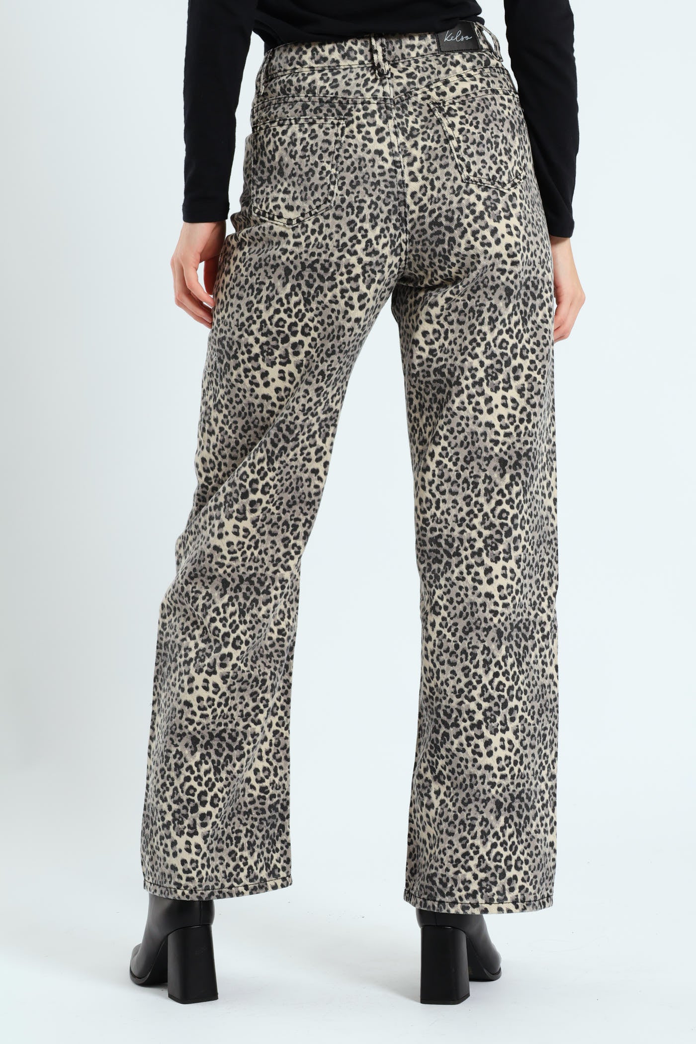 Unleash your wild side with these standout leopard print jeans, designed to make a bold statement while delivering ultimate comfort. Crafted from sturdy denim, these jeans feature a classic high-waisted fit and relaxed wide legs for a flattering silhouette. The all-over animal print brings a touch of edginess to casual outfits, making them perfect for day-to-night styling and adding personality to your denim collection.